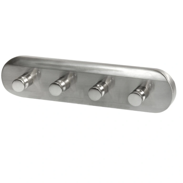 Fyra krokar i ett och samma beslag i borstat stål, modell Virginia.