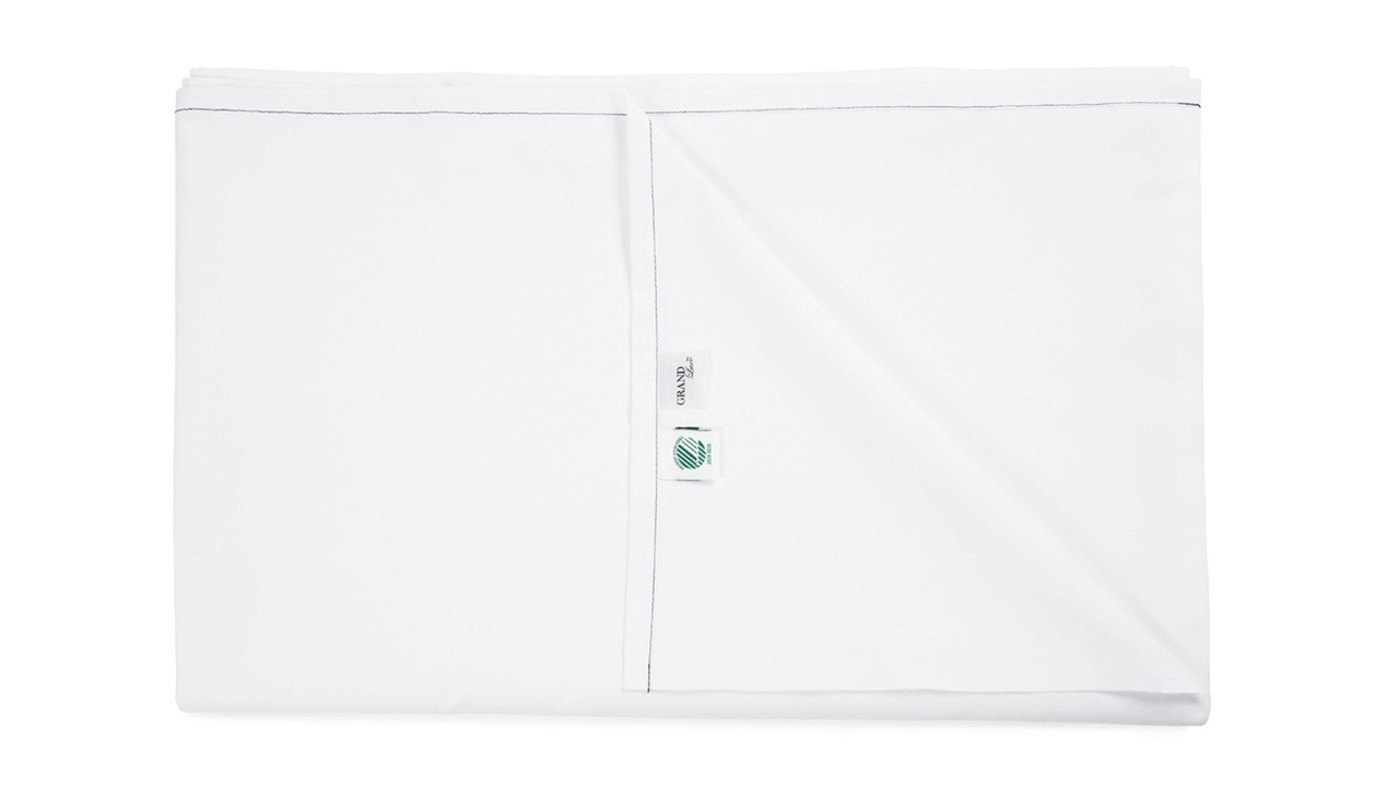 Hotellakan - 50% bomull 50% polyester. Enkel hantering efter tvätt och torktumling. Trådtäthet: T180. Färgkodad med grön rand för lätt identifikation. Öko Tex Made in Green
